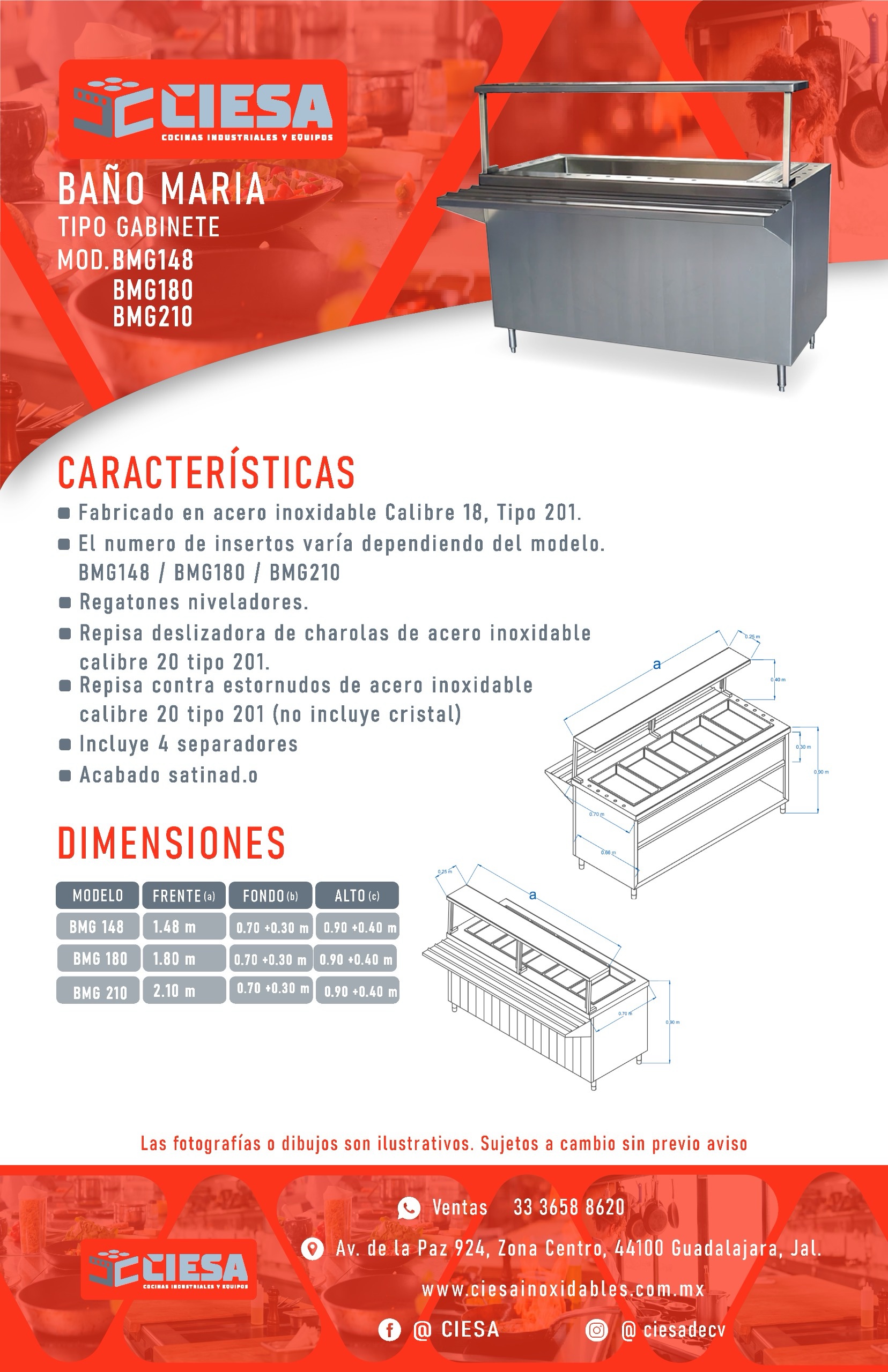 Fabricado en Acero Inoxidable Cal. 18 y 20 Acabado Sanitario Insertos No Incluidos