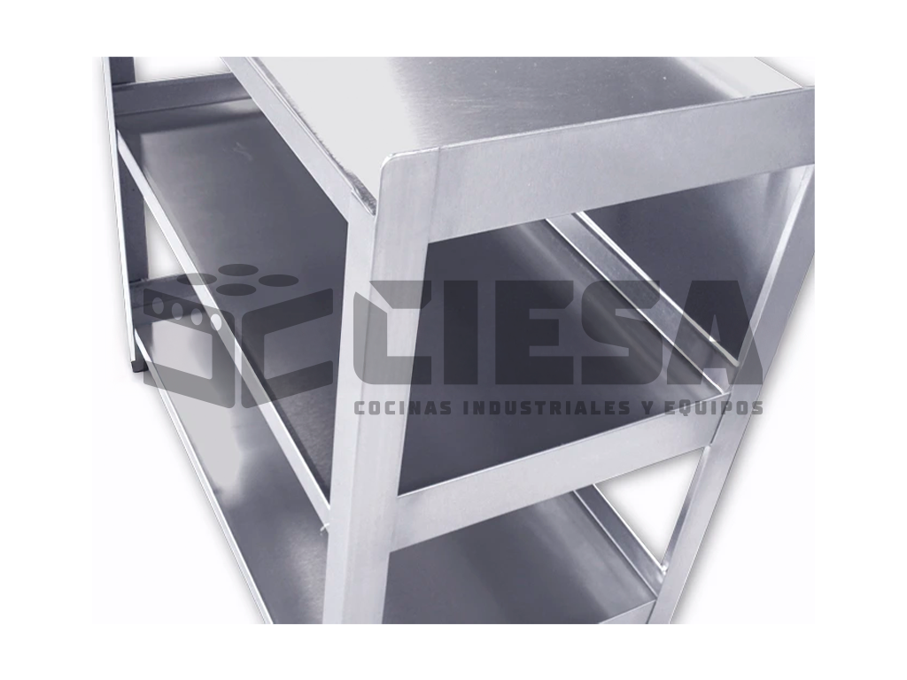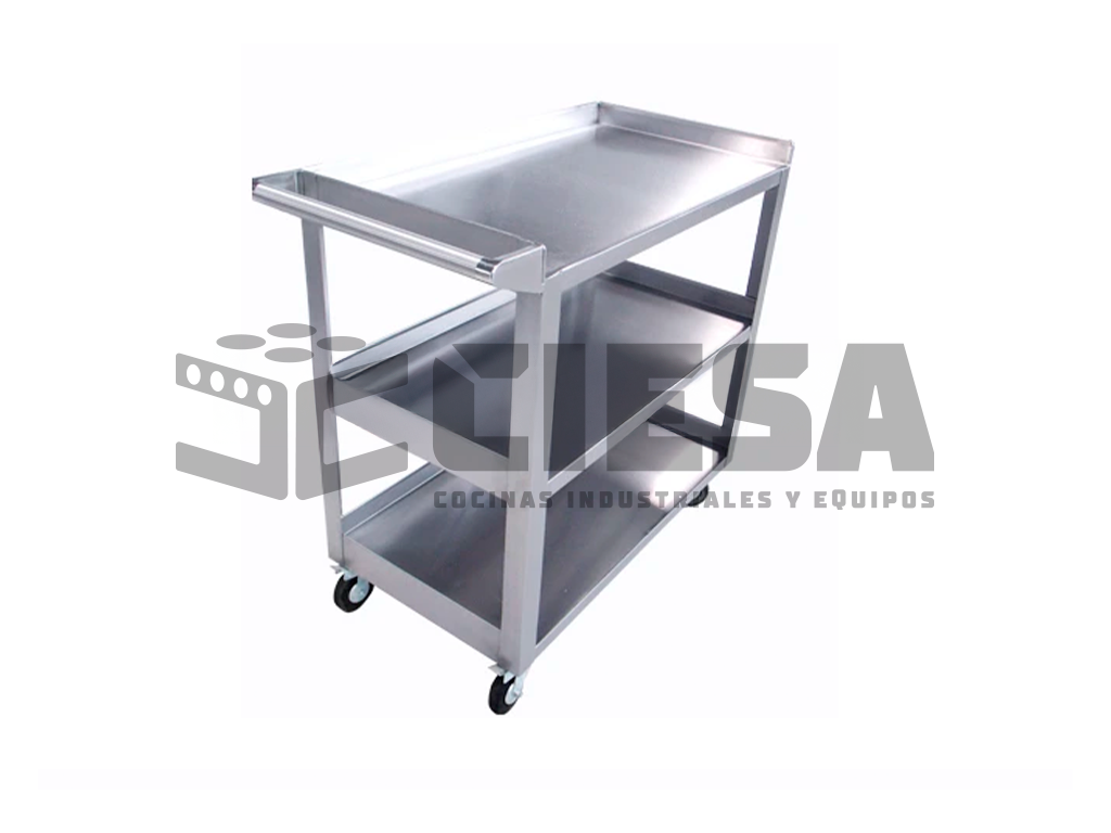 Carro de Servicio Fabricado en Acero Inoxidable Cal. 18 y 20 Con 3 Entrepaños